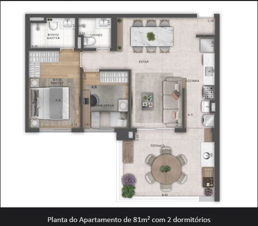 - Área Privativa: 81 m²